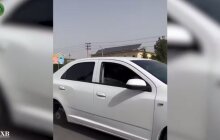 Блогер из Кашкадарьи проехался на своём автомобиле без одного колеса и был наказан