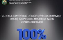 В пресс-службе Пенсионного фонда Республики Узбекистан опубликовано информационное сообщение. Сообщается, что 100%