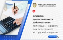 В пресс-службе Министерства юстиции Республики Узбекистан напомнили работодателям о некоторых субсидиях. Работодатели