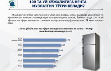 Подсчитано количество холодильников - передаёт пресс-служба Национального комитета Республики Узбекистан по статистике.