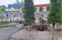 Из-за сильных дождей в Андижанской области дерево упало возле входа в школу