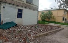 В Джизаке мужчина снёс незаконную пристройку к своей квартире и оставил мусор на улице